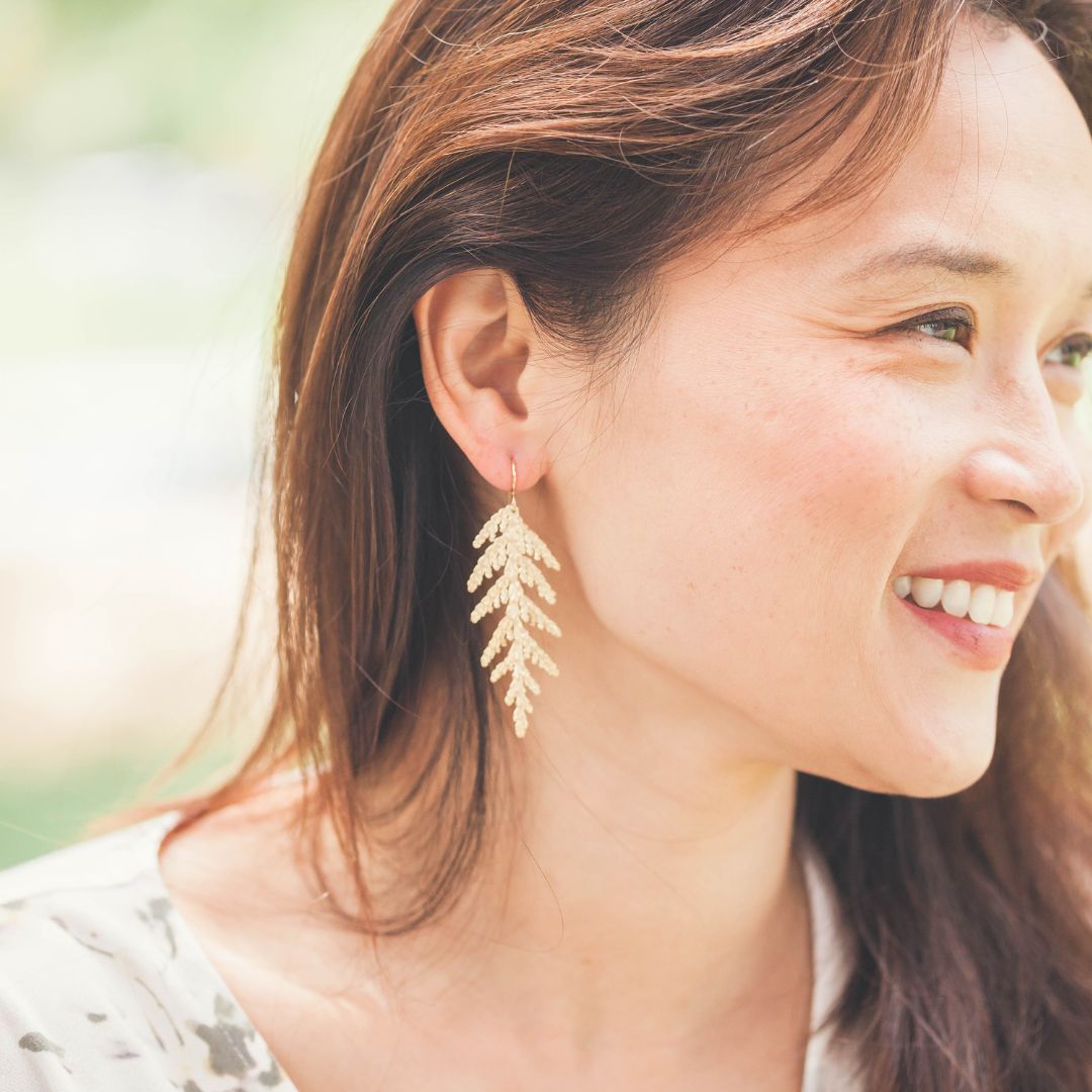 We only use high quality, hand-forged Sterling Silver hooks on all our earrings. Hooks for pieces in the Golden option are Gold-filled (Sterling Silver core) and will not tarnish.
